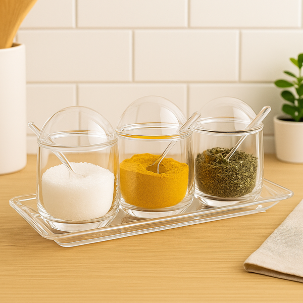 - 1 Kit de 3 Potes com Colher e Suporte