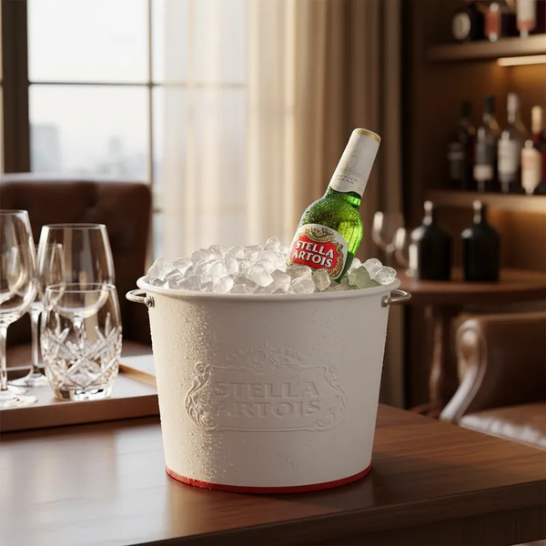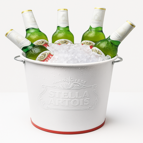 Quer servir suas bebidas com muito mais estilo? Chegou o balde de gelo para bebidas da Stella Artois. Produto licenciado e feito de alumínio resistente, o balde promete manter suas bebidas geladas por muito mais tempo.