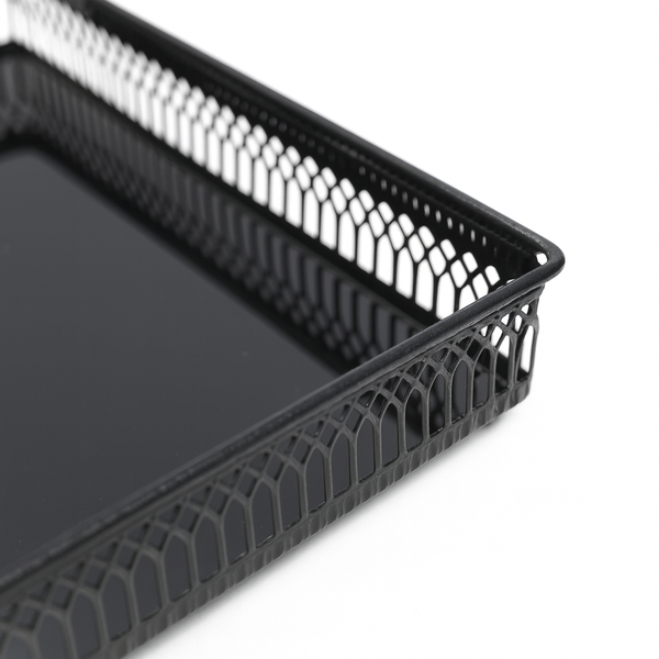 Para quem gosta de organização com beleza, a Jolitex criou a Bandeja Retangular Italiana. Feita em metal e espelho, a Bandeja Italiana serve para você organizar pequenos objetos, tanto de decoração, quanto de higiene. Podendo deixar seus ítens expostos de uma forma mais bela. Dando um toque de requinte aos seus perfumes, aromatizadores e o que mais você quiser expor. O espelho proporciona um toque sofisticado e elegante ao produto, pois reflete os objetos colocados. O metal preto em toda sua volta completa a peça, proporcionando segurança. Pois tem 5 cm de altura, fazendo com que os objetos colocados não caiam facilmente. Além do mais, uma peça preta exposta em qualquer cômodo da sua casa, combina com qualquer decoração dando mais toque de luxo e sofisticação.