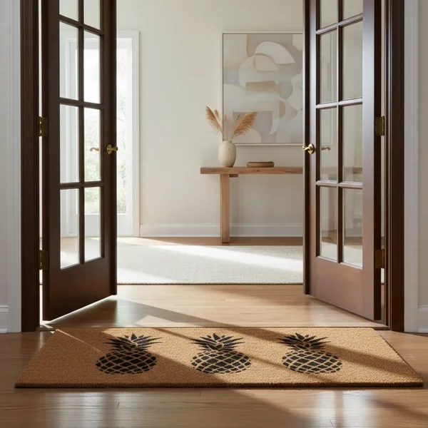 Capacho Retangular Fibra De Coco Base PVC 70x33cm - Komeco Abacaxi