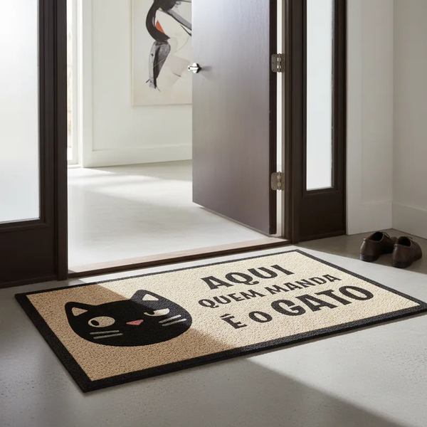 Capacho Vinílico Estampado Antiderrapante 60x40cm - Komeco Gato
