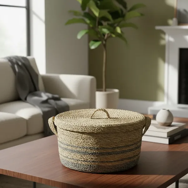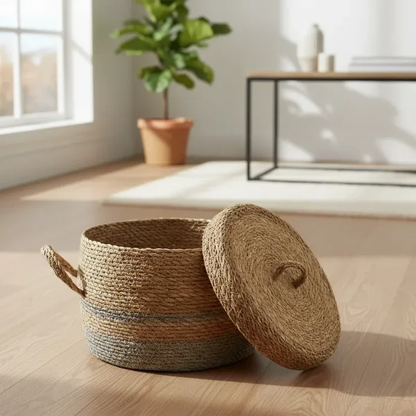 Cesto Organizador Com Tampa e Alças De Seagrass Zoes - Jolitex MEK