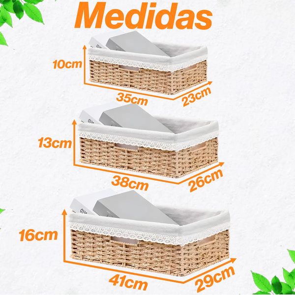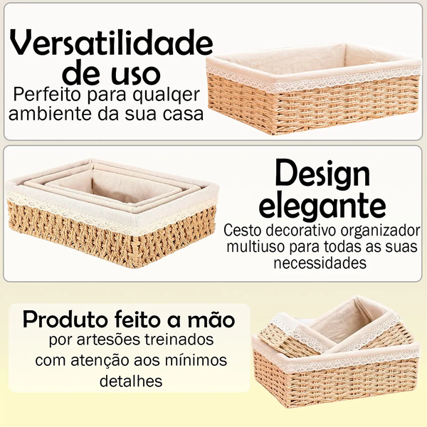 ALÇAS: Os cestos possuem alças, facilitando o manuseio e transporte.
