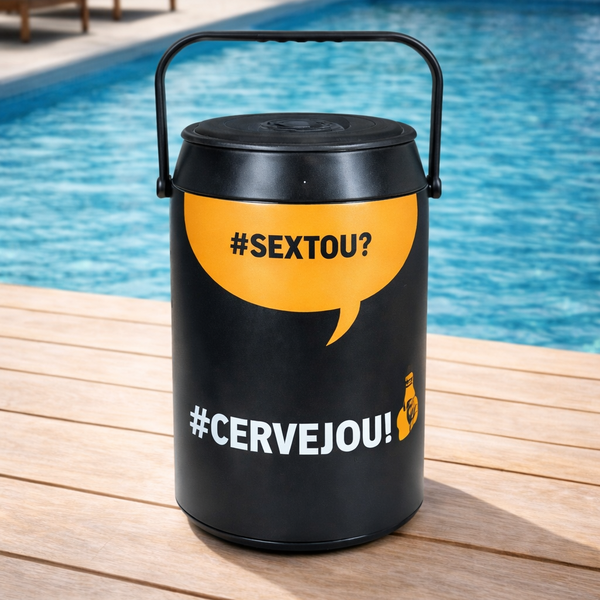 Com design moderno em preto fosco e a estampa divertida #Sextou? #Cervejou!, ele não passa despercebido ele é funcional e, ao mesmo tempo, vira parte da conversa.