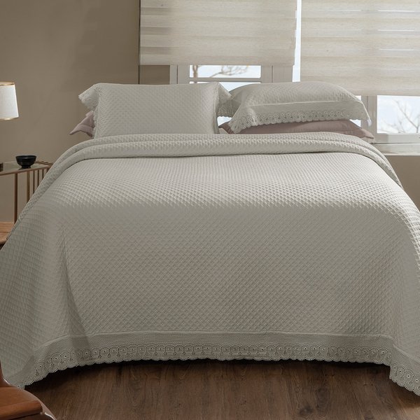 Transforme seu quarto em um ambiente sofisticado e acolhedor com esta elegante Colcha com Renda, confeccionada em 100% poliéster de alta qualidade. Seu toque extremamente macio proporciona uma experiência de conforto incomparável, tornando suas noites ainda mais agradáveis.