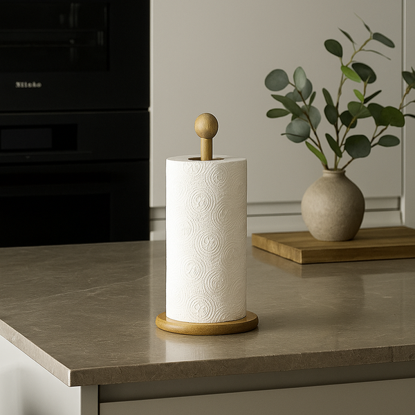 Transforme sua cozinha com um toque de elegância e praticidade. O Porta Papel Toalha de Bambu da marca Jolitex combina design sofisticado e funcionalidade, valorizando a decoração e facilitando o dia a dia.