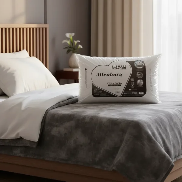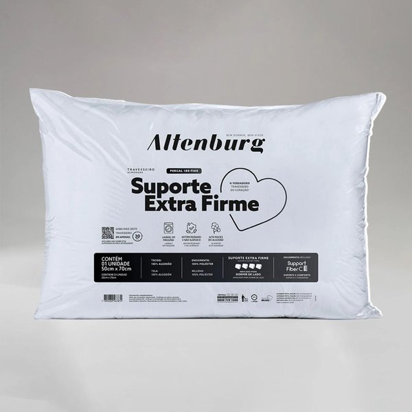 O Travesseiro Suporte Extra Firme da Altenburg é confeccionado com materiais de altíssima qualidade. Ele é ideal para quem dorme de lado, pois sua estrutura permite um perfeito apoio na curvatura dos ombros. O Travesseiro Suporte Extra Firme possui um alto poder de resiliência, ou seja, mantem sua forma e suporte ao longo do tempo. Sua capacidade de recuperar a forma original logo após o uso garante a você desfrutar do conforto e do suporte superior por muito mais tempo. Este travesseiro apresenta uma estrutura interna desenvolvida para fornecer o suporte extra firme, garantindo um alinhamento ideal da coluna durante toda a noite, sua densidade superior proporciona um suporte contínuo e consistente, ajudando a reduzir dores e desconfortos e promovendo um sono mais profundo e reparador. Além de todas essas qualidades, ele possui ação antimicrobiana, evita também odor causado por bactérias e fungos e evita a formação de mofo, tornando-o anti alérgico. Sendo indispensável para quem possui alergias.